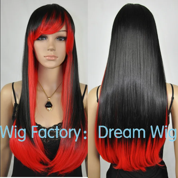 New Style Two Tone Long Straight Full Bang Hair Black Red Gradient Synthetic Gothic Fashion Cosplay Party Wig Perucas Aliexpress